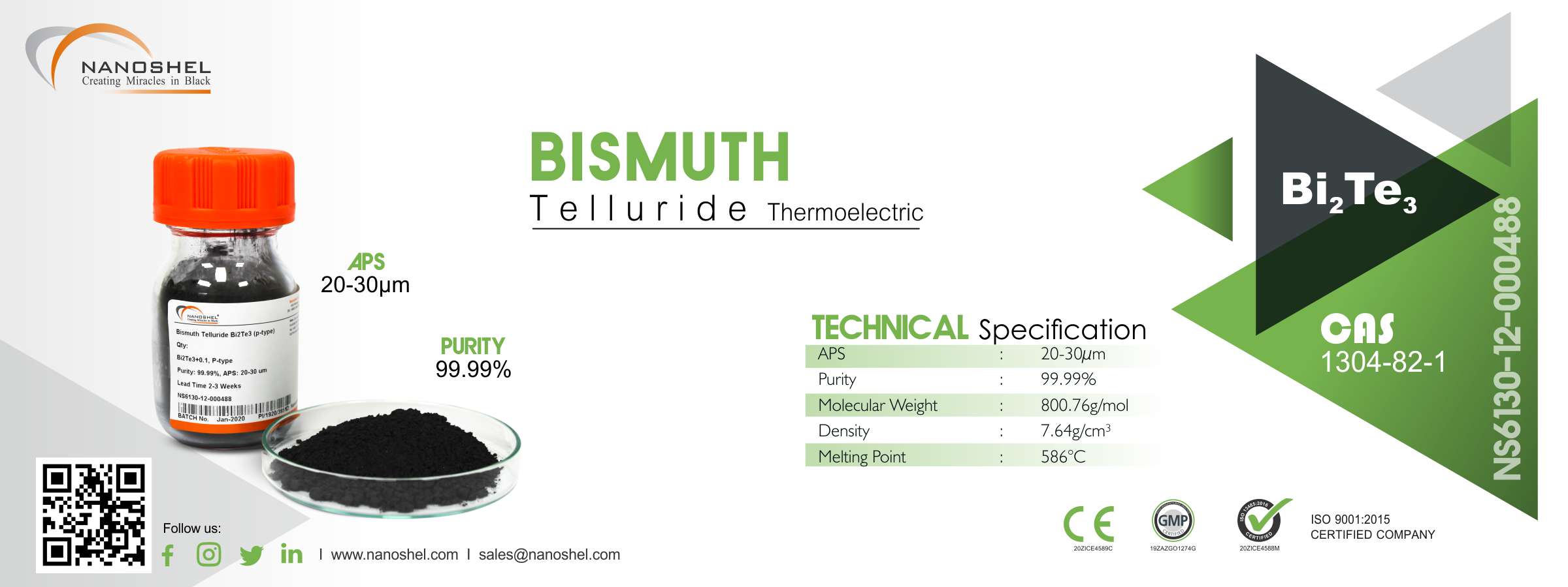 Purity: 99.99%, APS: 20-30µm