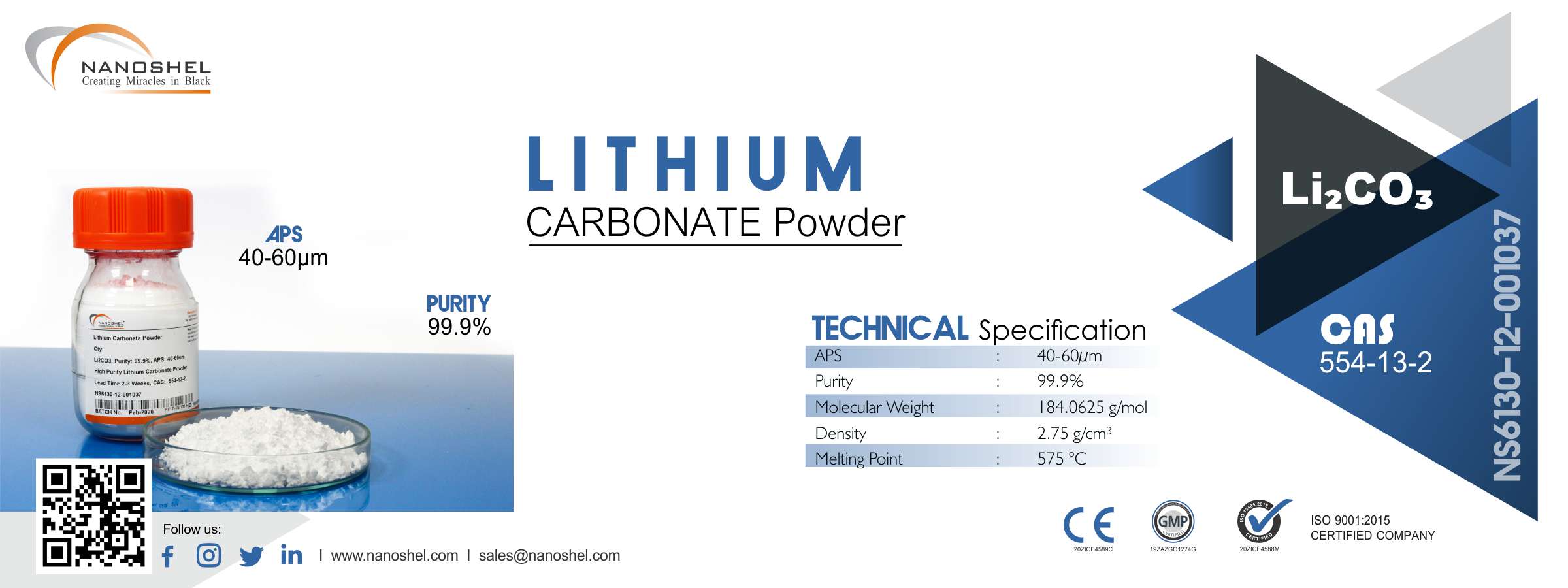 Li2CO3, Purity: 99.9%, APS: 40-60µm